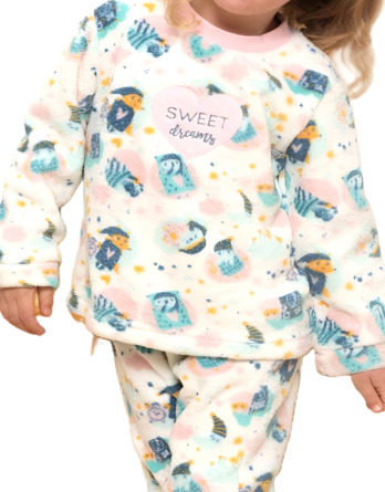 KN279 Pijama invierno para niña de coralina sweet rosa KN279 Pijama invierno para niña de coralina sweet rosa. Pijama infantil de dos piezas en tejido coralina, este tejido es ideal para los días de invierno ya que proporciona calor al cuerpo, embalaje presentación en caja individual ideal para regalar. Composición 100% poliéster Ref.: KN279