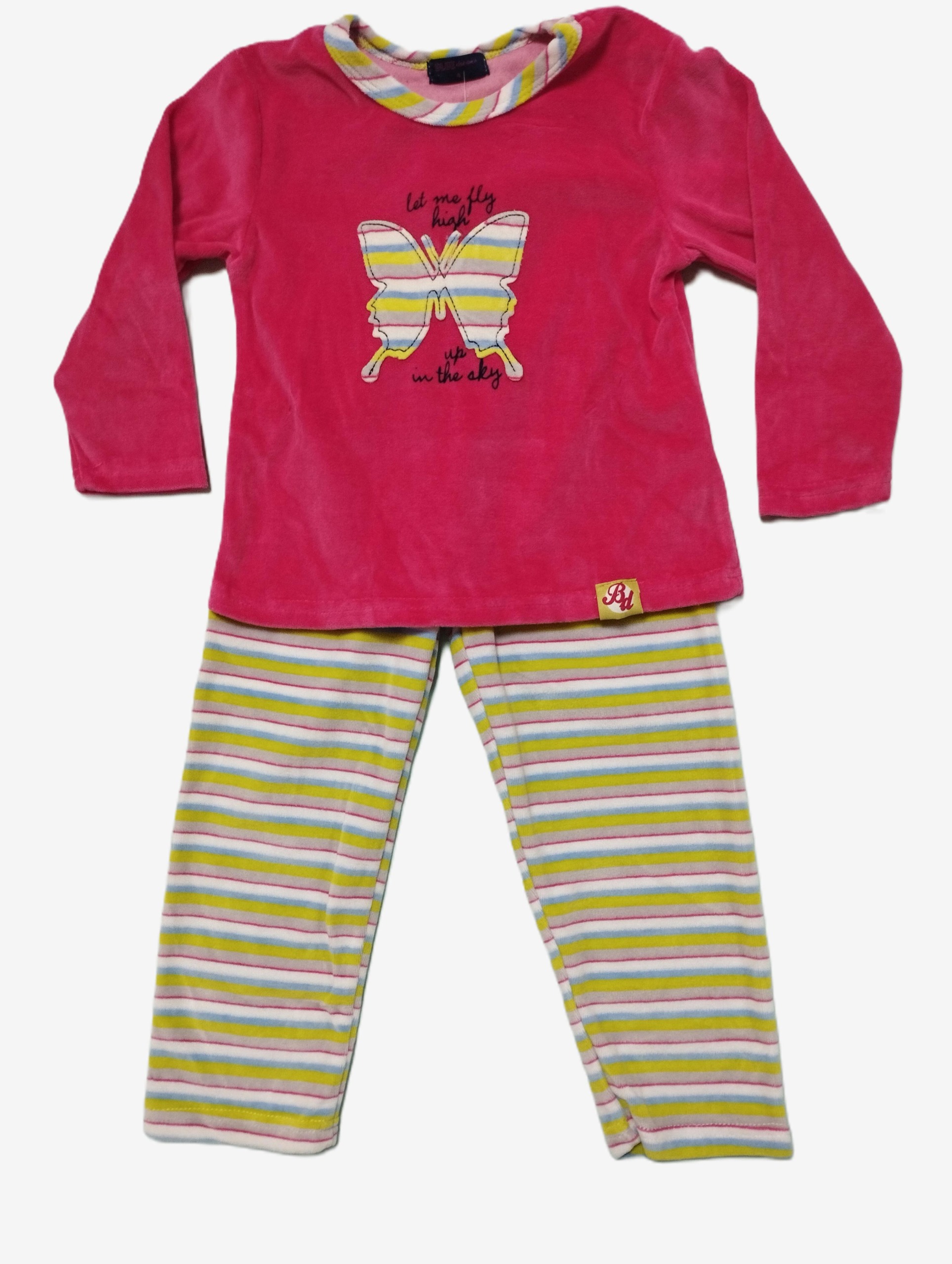 52605 Pijama invierno para niña de terciopelo fucsia y rayas verdes